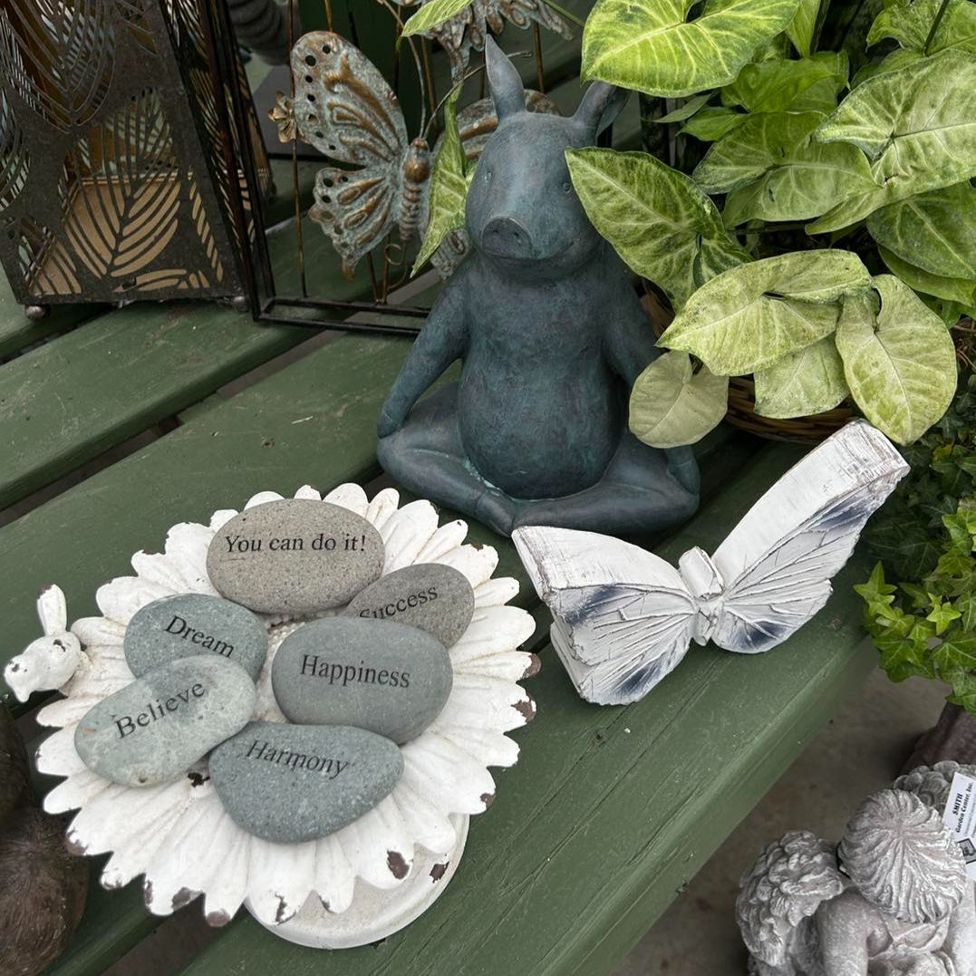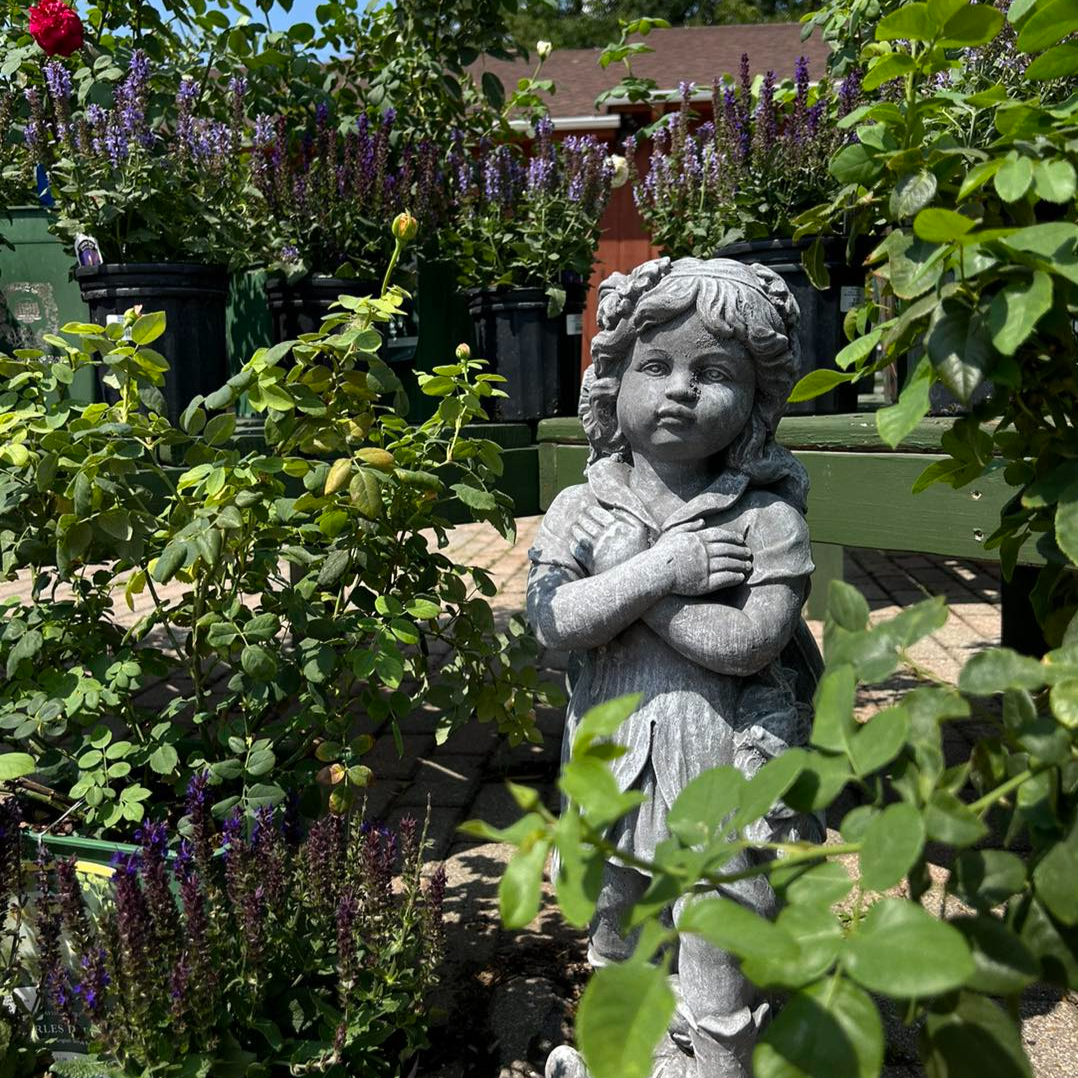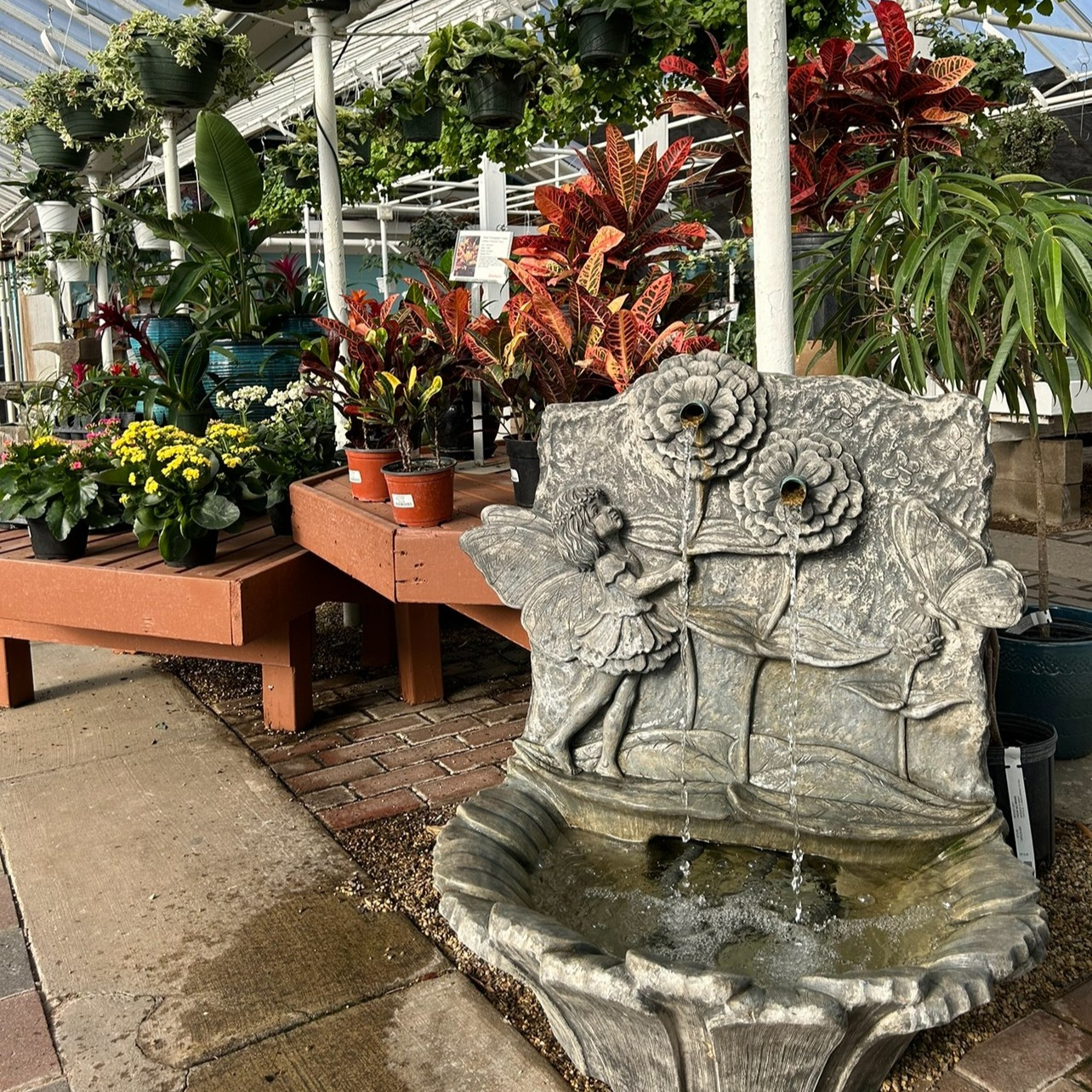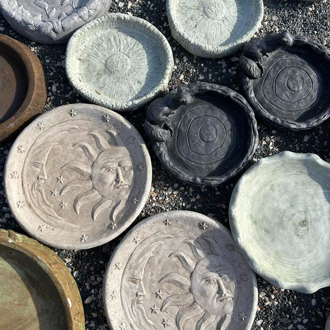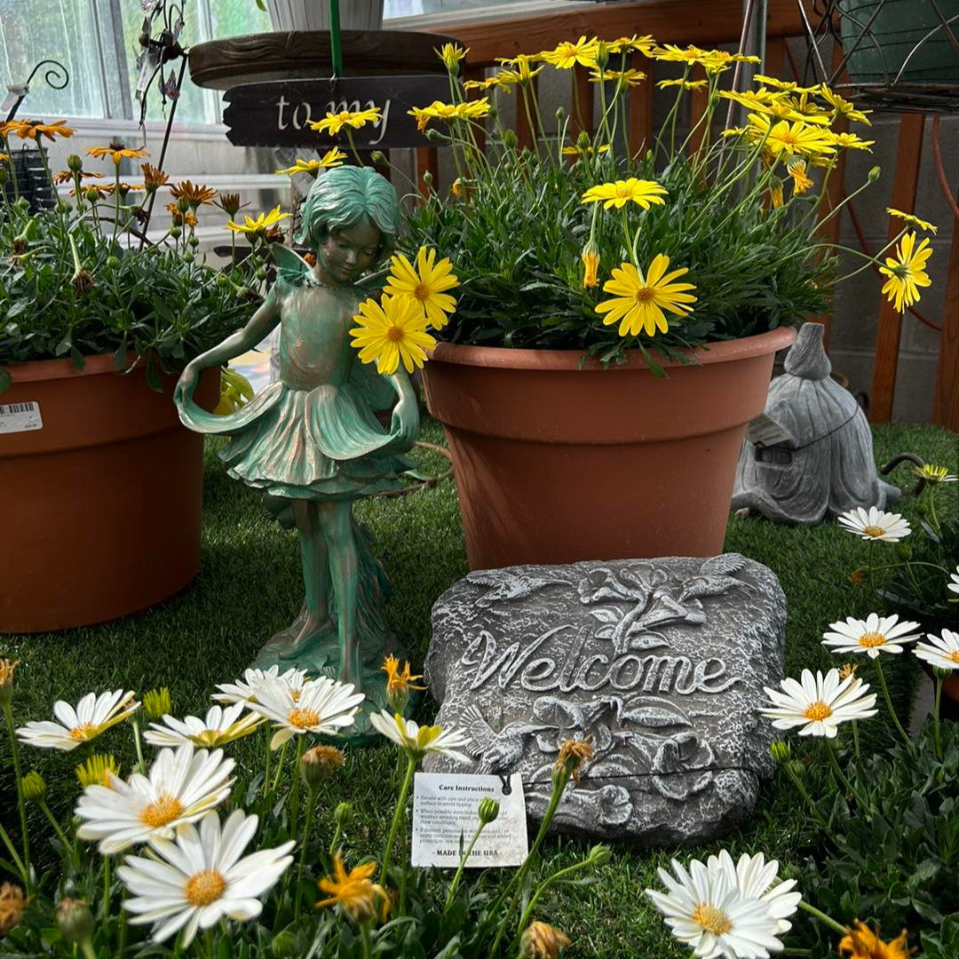 Product-focused photography showcasing garden decor, fountains, statuary, and retail displays designed to inspire customers